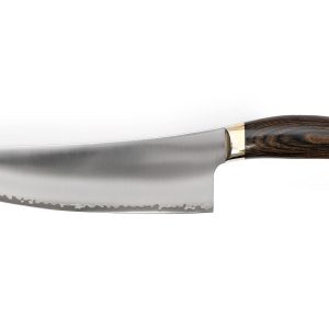Рукоятка зроблена для максимальної зручності під час використання – не надто тонка, не надто товста. З комфортним для хвату вигином. Для рукояті використовується PakkaWood (колір горіха) – це суміш натурального деревного матеріалу та смоли. Такий варіант значно практичніший за рукоятку з натуральної деревини в плані усадки і довговічності. Pakkawood з часом не втратить колір і не стане шорсткою, на відміну від натурального дерева. Латунний болестер згодом набуває характерного нальоту, завдяки якому ніж набуде старовинного вигляду.