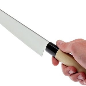 - Ідеальний універсальний ніж практично для всіх завдань з різання на кухні. Завдяки довгій формі леза ніж ідеально підходить для нарізки великих продуктів, таких як качани капусти і салату, а також великих шматків м’яса.
