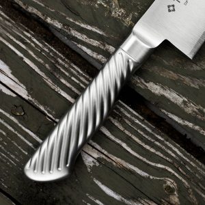 Кухонний Шеф ніж F-888 призначений для будь-яких видів робіт, пов’язаних з нарізкою і шаткуванням продуктів. Їм зручно обробляти м’ясо, птицю, рибу. Саме тому ми пропонуємо купити шеф ножа всім, хто любить готувати. Японський ніж Tojiro PRO має найтоншу ріжучу кромку. Лезо ножа виконане з елітної сталі VG-10, яка славиться своєю міцністю та можливістю довго тримати заточку. Спеціальна нековзна рукоять виконана з нержавіючої сталі 18-8. Вона вкрита спеціальним шаром, який дозволяє зручно утримувати ніж навіть вологою рукою.