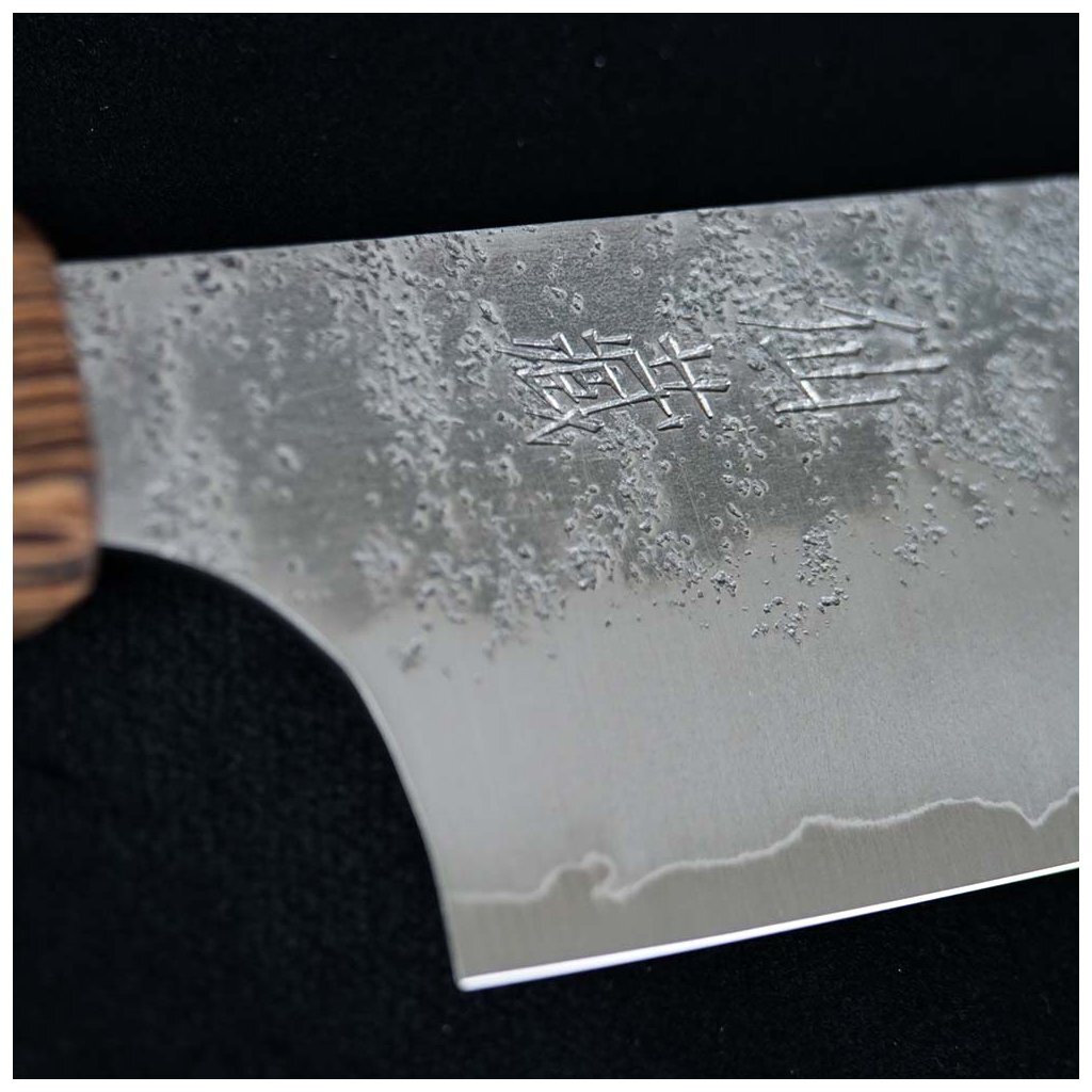 - Поверхня клинка прикрашена традиційним візерунком, який нагадує грубу фактуру шкірки груші та надає ножу автентичного ретро-виду. Таке оздоблення не лише покращує естетичний вигляд ножа, а й зменшує прилипання їжі до леза