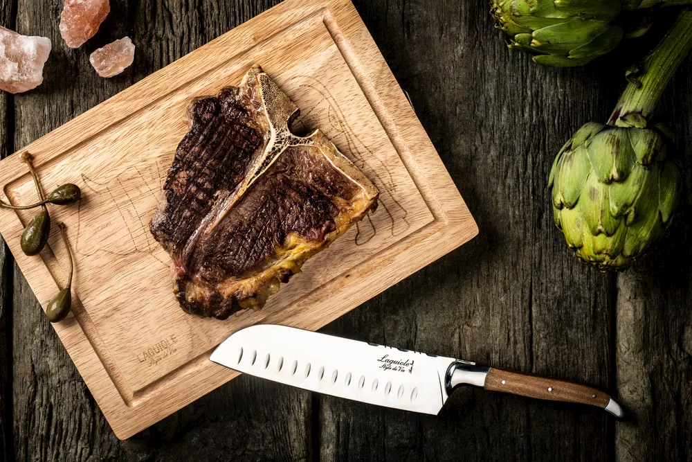Ніж Сантоку з ручкою з оливкового дерева та обробною дошкою із серії Luxury Line від Laguiole Style de Vie стане ідеальним подарунком для будь-якого шеф-кухаря.